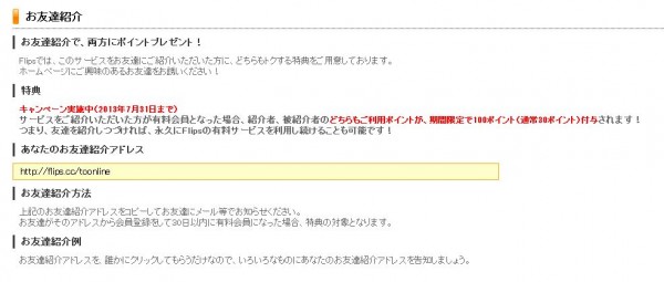 今回、2013年7月31日までのキャンペーンとして、Flipsを紹介した人、された人にそれぞれ、なんと、100ポイントを付与してしまいます!