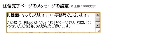 送信完了ページとは、お問い合わせをした後の画面です。ここのメッセージを自由に変更できます。