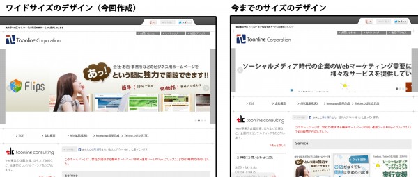 今まで、Flipsでは、横幅が840ピクセル、縦が210ピクセルの固定された大きさでこのメインイメージを使っていました。ただ、「もっと大きな(小さな)ホームページが作りたい。」というような声をたくさんいただくようになりましたので、それに対応できるように、ということで作ってみました。