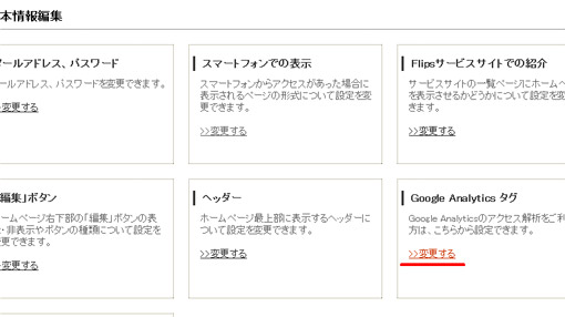 次にFlipsの管理メニュー「基本情報編集」をクリック。