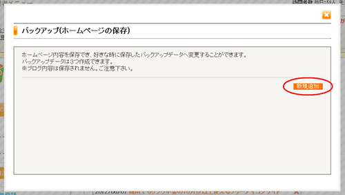 まず、編集画面の下部にある「バックアップ」をクリックしてください。