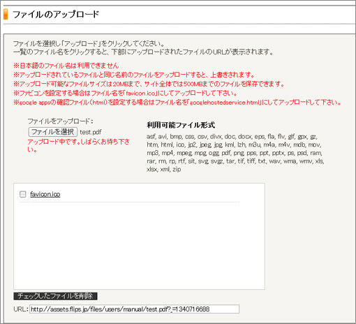 ここでの注意点としては、半角数字以外のファイル名をアップロードすることは出来ません。